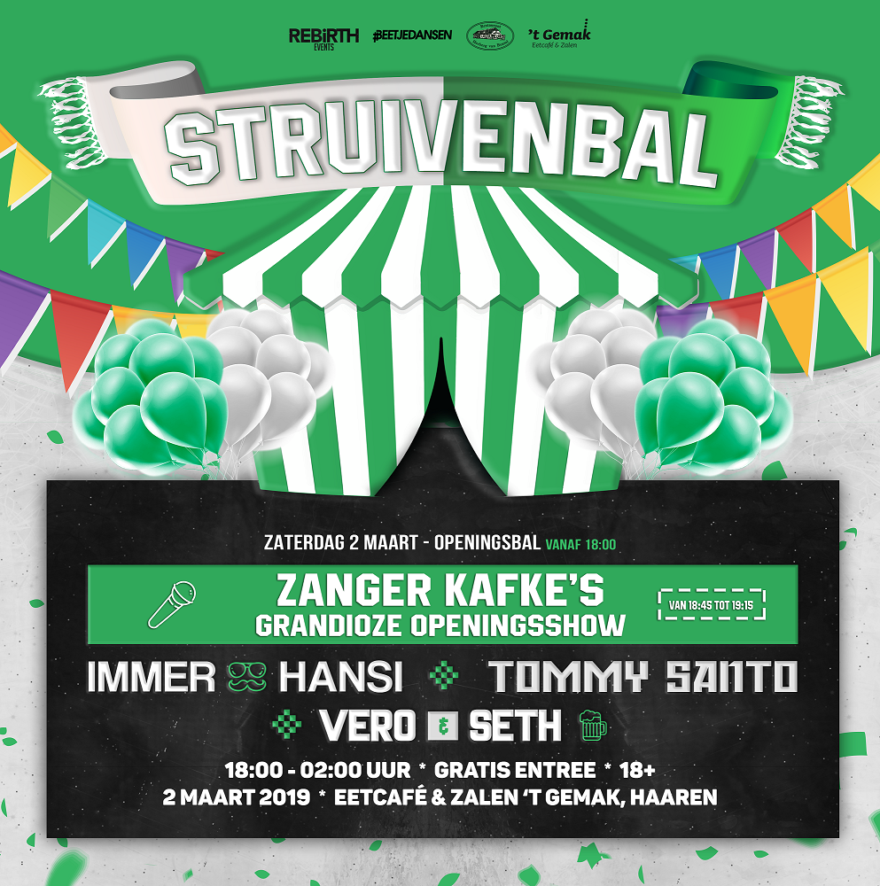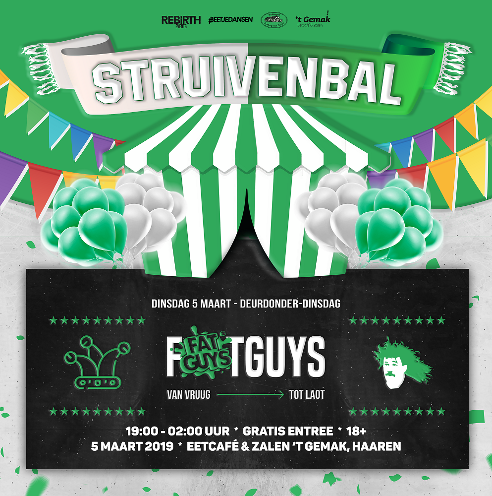 HAAREN – 6 februari 2019. Voor carnaval 2019 hebben Herberg van Boxtel, ’t Gemak, BeetjeDansen events en Rebirth Events de handen ineen geslagen om gezamenlijk een gave carnaval te organiseren voor jong en oud in ons prachtig gruun-wit Struivendurp met als locatie ’t Gemak.