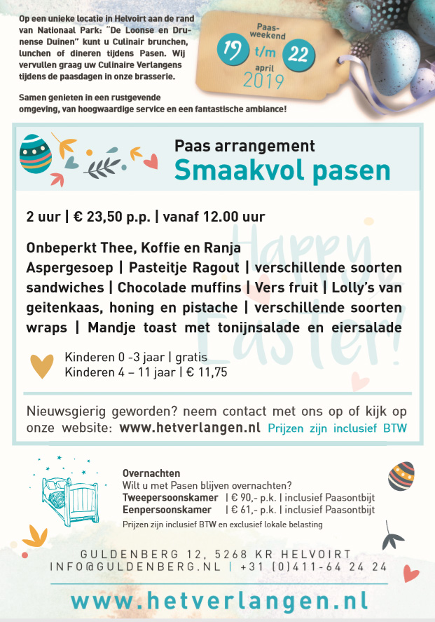 Komt u ook genieten van een smaakvol Pasen bij Guldenberg Hotel & Brasserie?