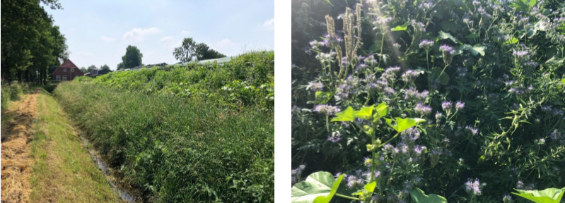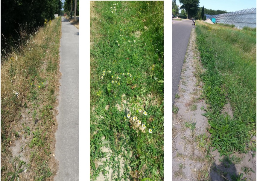 Dit werd een zoekplaatje: door de minimale regenval, en de warmte in mei en juni is er vrijwel niets opgekomen. Het idee om verse sleuven in te zaaien met een bijenmengsel werd ingediend door Glasvezel coöperatie GroeneWoudGlas. Het was “out of the box” en experimenteel en werd daarom beloond met een voucher. Met veel enthousiasme heeft een flinke groep vrijwilligers op twee zaterdagen in april en mei 8 kilometer sleuven ingezaaid en meteen ook maar het zwerfvuil opgeruimd.