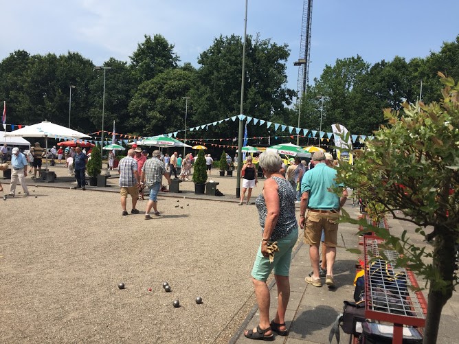 Het was warm, druk en gezellig. Er waren meer dan 100 spelers plus een aantal bezoekers, die genoten van soep, worstenbroodjes, verfrissende drankjes, maar vooral van het jeu de boules-spel. Ook was er een loterij met een kleine 100 prijzen die gratis door sponsors ter beschikking waren gesteld. Er werden meer dan 1000 lootjes verkocht. Hoofdprijswinnaar was Jan Vugts uit Vlijmen. Zie foto.