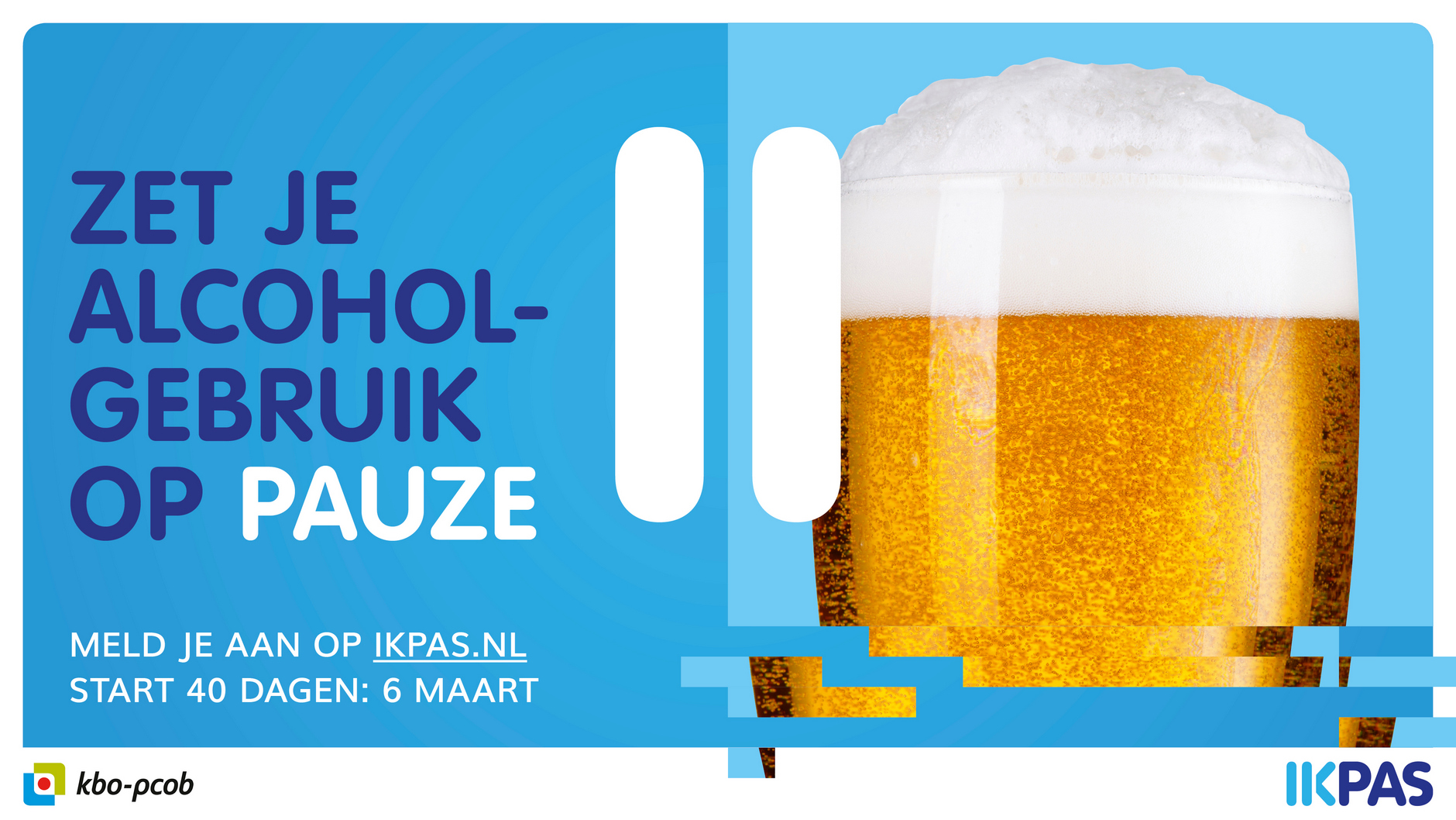 IkPas vraagt je niet om nooit meer alcohol te drinken, maar om je alcoholgebruik even op pauze te zetten.