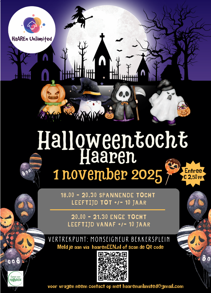 HAAREN – 5 oktober 2025. Zaterdag 1 november a.s. verandert Haaren in een griezelig dorp vol spannende en enge verrassingen… Durf jij mee te lopen?