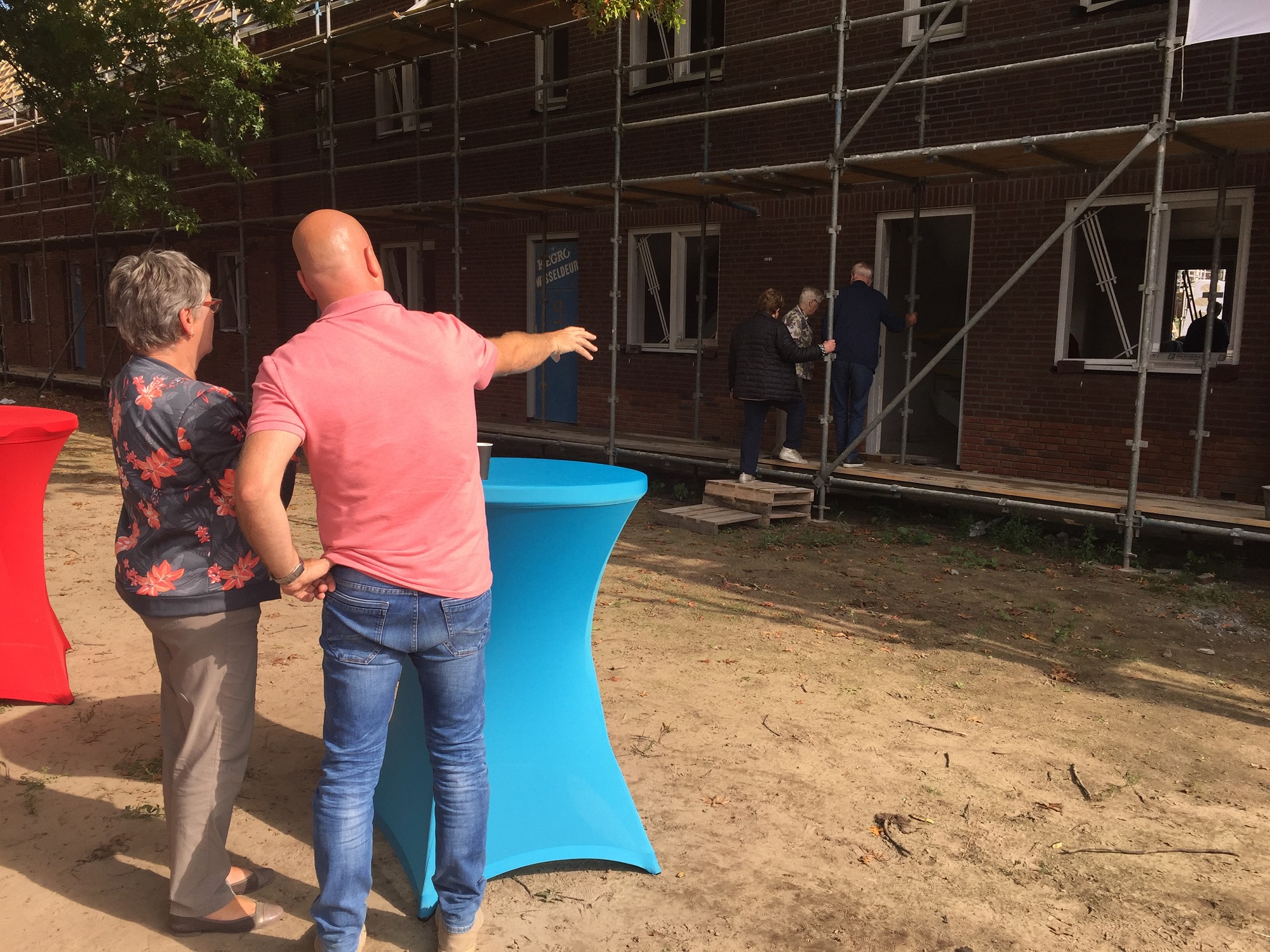 Woonveste en Hendriks Coppelmans zijn zich ervan bewust dat ze een jaar lang te gast zijn in de woonomgeving van de wijkbewoners. Daarom vinden zij het belangrijk de direct omwonenden op de hoogte te houden van de bouw en te betrekken bij mijlpalen, zoals het bereiken van het hoogste punt. De buurtbewoners zien de buitenkant van de woningen iedere dag beetje bij beetje veranderen, maar wat gebeurt er allemaal aan de binnenkant? Een groep geïnteresseerde omwonenden bekeek dit donderdagmiddag op de bouwplaats.