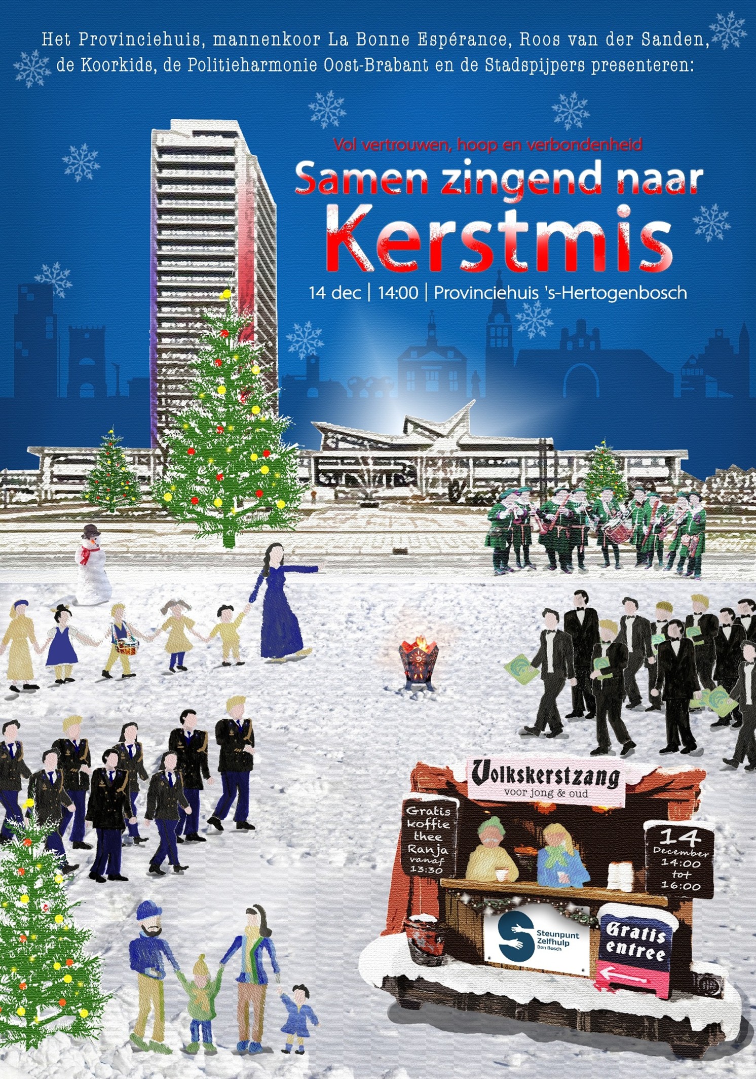 De Volkskerstzang staat dit jaar in het teken van ‘vertrouwen, hoop en verbondenheid’ De Stichting Volkskerstzang ’s-Hertogenbosch zorgt ook nu weer voor een kerstmiddag voor jong en oud, groot en klein, kortom voor de hele familie! Het provinciehuis staat, zoals gebruikelijk, garant voor een warme ontvangst.