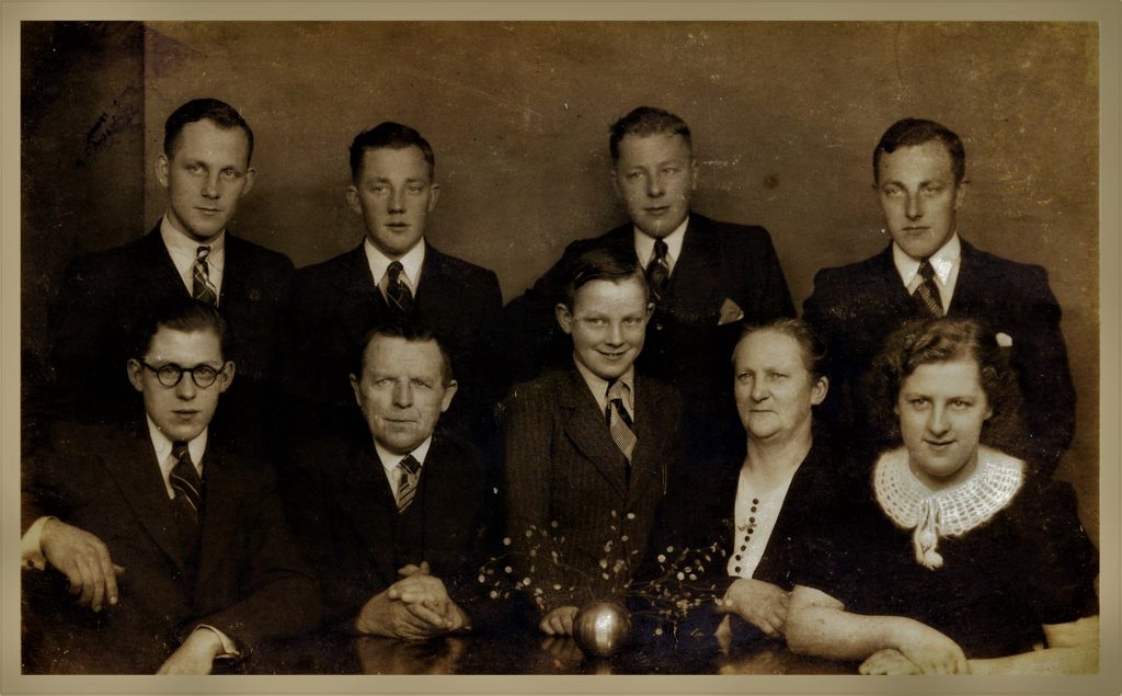 Foto: Het gezin Van Linden in 1939. De tweede persoon van links op de bovenste rij is René. (Coll. Familie van Bilsen-Van Linden)