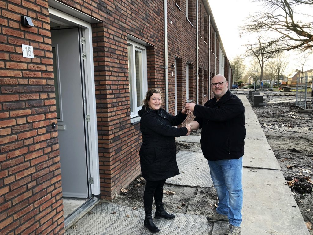 HAAREN – 8 februari 2019. De laatste nieuwe bewoners van nieuwbouwproject Hofmeester in Haaren hebben hun sleutels ontvangen uit handen van wooncorporatie Woonveste uit Drunen. Daarmee is het volledige project nu opgeleverd. Bouwbedrijf Hendriks Coppelmans uit Uden overhandigde de sleutels van de koopwoningen in het project al in december aan de nieuwe bewoners. Op de plek van de oude basisschool aan de Haarensteijnstraat staan nu zes patiokoopwoningen en veertien huurwoningen. De bouw startte in februari 2018.