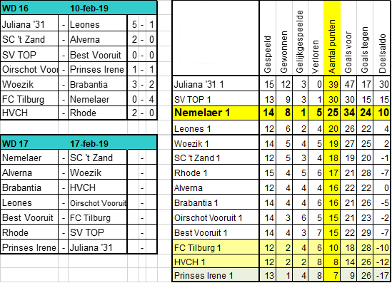 a.s. zondag komt SC t Zandt op bezoek. Bij winst van Nemelaer zet het een heel grote stap om de 2e periode te kunnen winnen.